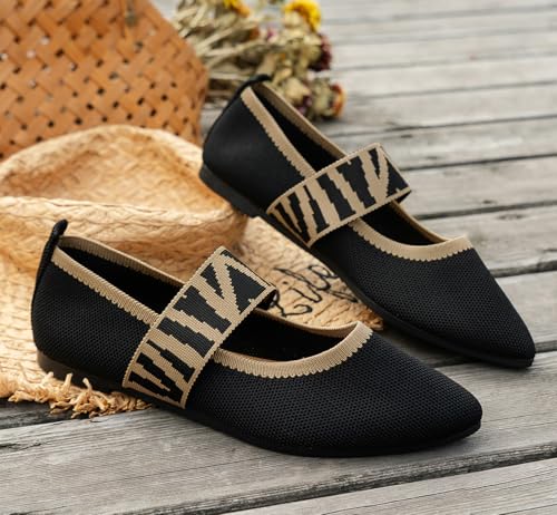 Women's Flats Shoes Pointed Toe Knit Casual Ballet Flats Comfortable Dressy Mary Jane Flat Office Work Dress Shoes