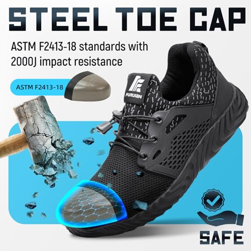 Furuian Steel Toe Indestructible Shoes Men Women Lightweight Puncture Resistant Safety Work Shoes Sneakers for Construction Working Breathable