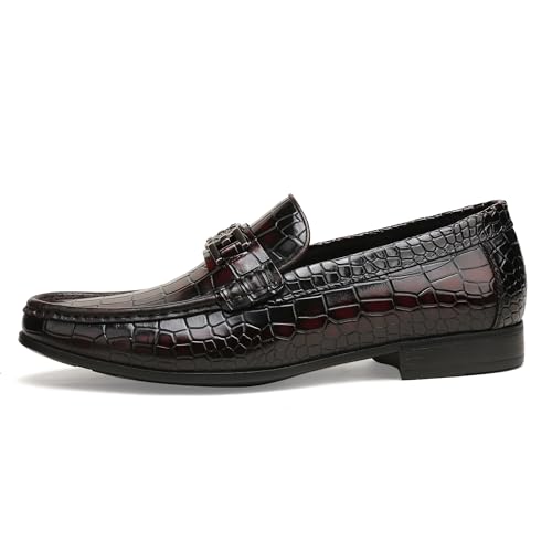 Mens Genuine Dress Shoes, Premium Crocodile Print Leather Slip-on Casual Shoes Penny Loafers for Mens, Black