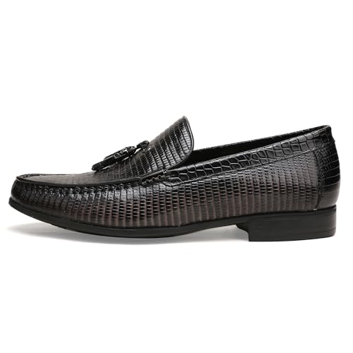 Mens Genuine Dress Shoes, Premium Crocodile Print Leather Slip-on Casual Shoes Penny Loafers for Mens, Black