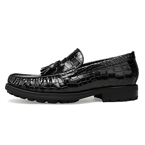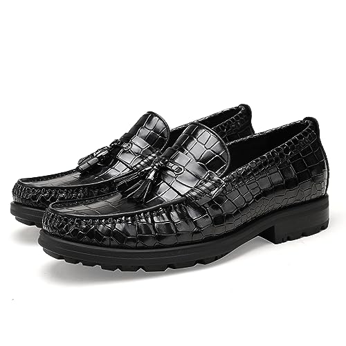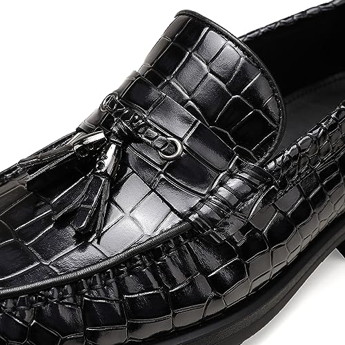 Men's Tassel Dress Shoes, Casual Crocodile Printed Tassel Loafer Handmade Slip-on Penny Loafer for Mens