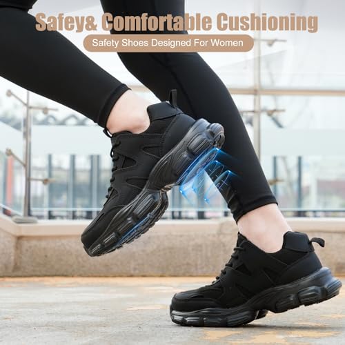 Hogent Steel Toe Shoes for Women Men Wide Non Slip Composite Work Sneakers Indestructible Comfortable Safety Tennis Shoes Lightweight Breathable Construction Sneakers Puncture Proof Ergonomic
