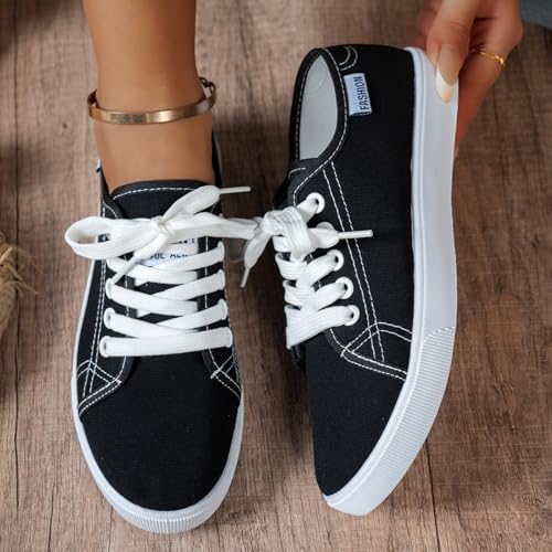 Women's Fashion Canvas Sneakers Casual Tennis Shoes Low Top Lace Up Sneakers Walking Shoes for Women