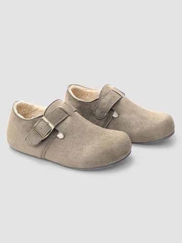 Women's Suede-Lined Clogs Slip-On Style with Adjustable Buckle Cork Sole Leather Clogs Soft Work Shoes with Arch Support Unise