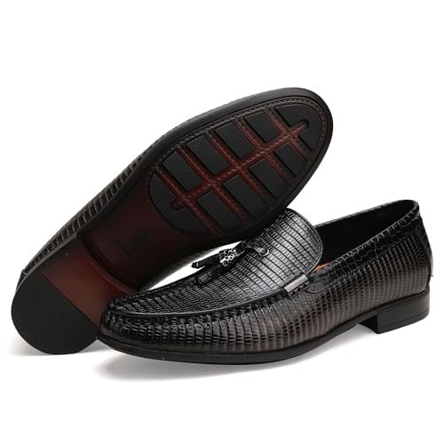 Mens Genuine Dress Shoes, Premium Crocodile Print Leather Slip-on Casual Shoes Penny Loafers for Mens, Black