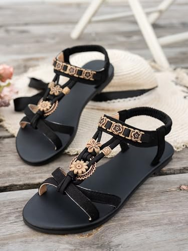 Boho Women's Flat Sandals - Comfortable Beach Flip Flops with Ethnic Embroidery, Non-Slip Sole Casual Summer Sandals for Seaside & Vacation