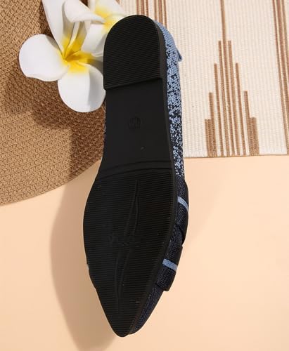 Women's Flats Pointed Toe Bow Knit Ballet Flat Shoes Comfortable Dressy Mesh Slip On Ballerina Flats for Women
