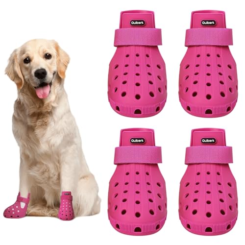 Dog Shoes for Hot Pavement Non-Slip Waterproof Dog Shoes for Medium Dogs Large Size Dogs Easy ON & Off Adjustable Easy-Clean for Beach Outdoor Rose Pink, Size M: (2.5’’x2-2.2’’)(L*W)