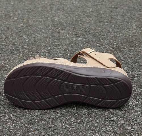 Women's Low Wedge Heels Summer Comfortable Dressy Platform Sandals Buckle Ankle Strap Open Toe Flower Wedge Sandals